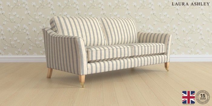 6.12.1 Buy Marford by Laura Ashley 3 Seater Sofa Kinsham Stripe Seaspray Blue Straight Brass Castor - Light Oak from the Next UK online shop Click here to use our accessible website