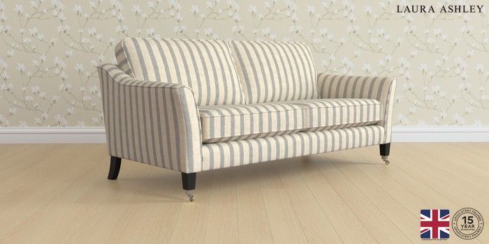 6.12.1 Buy Marford by Laura Ashley 3 Seater Sofa Kinsham Stripe Seaspray Blue Straight Chrome Castor - Black from the Next UK online shop Click here to use our accessible website