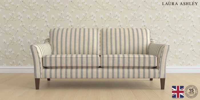 6.12.1 Buy Marford by Laura Ashley 3 Seater Sofa Kinsham Stripe Seaspray Blue Straight Mid - Chestnut from the Next UK online shop Click here to use our accessible website