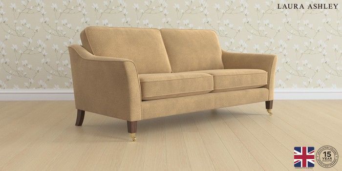 6.12.1 Buy Marford by Laura Ashley 3 Seater Sofa Lundar Chenille Caramel Natural Straight Brass Castor - Chestnut from the Next UK online shop Click here to use our accessible website