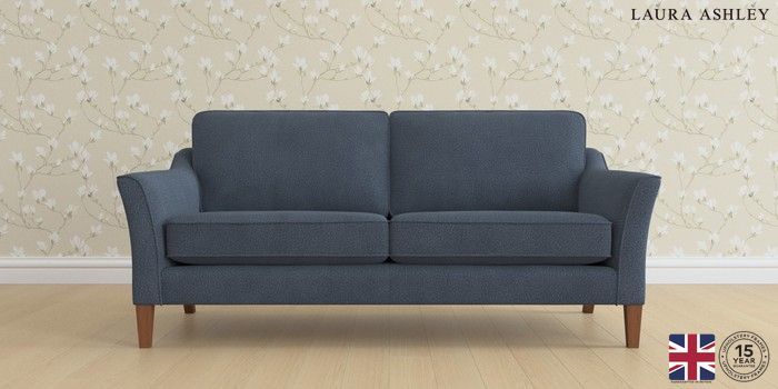6.12.1 Buy Marford by Laura Ashley 3 Seater Sofa Lundar Chenille Navy Blue Straight Mid - Teak from the Next UK online shop Click here to use our accessible website