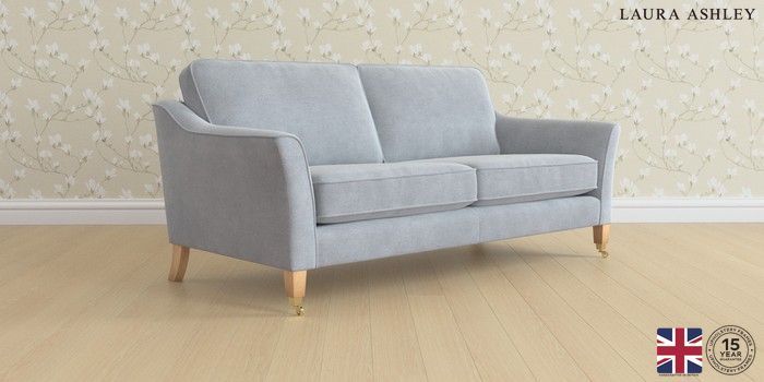 6.12.1 Buy Marford by Laura Ashley 3 Seater Sofa Peyton Powder Blue Straight Brass Castor - Light Oak from the Next UK online shop Click here to use our accessible website