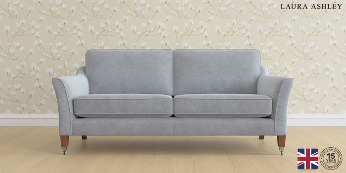 6.12.1 Buy Marford by Laura Ashley 3 Seater Sofa Peyton Powder Blue Straight Chrome Castor - Teak from the Next UK online shop Click here to use our accessible website