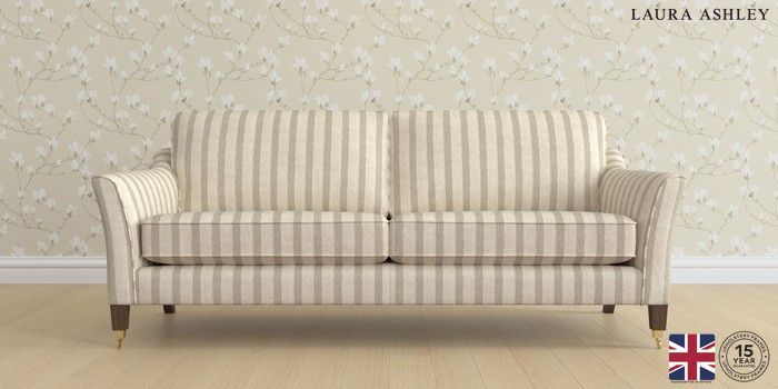 6.12.1 Buy Marford by Laura Ashley 4 Seater Sofa Kinsham Stripe Natural Straight Brass Castor - Chestnut from the Next UK online shop Click here to use our accessible website
