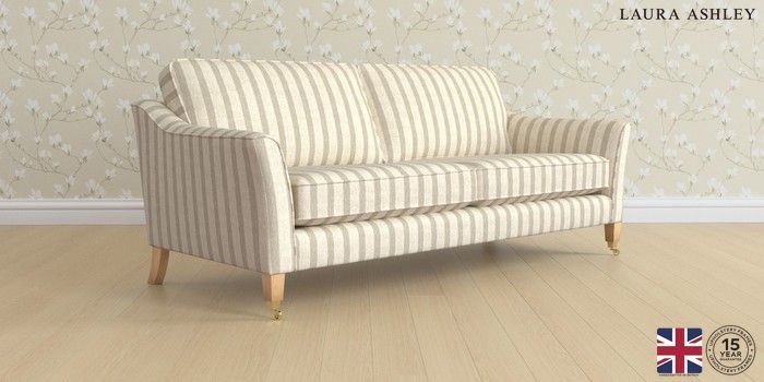 6.12.1 Buy Marford by Laura Ashley 4 Seater Sofa Kinsham Stripe Natural Straight Brass Castor - Light Oak from the Next UK online shop Click here to use our accessible website