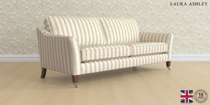 6.12.1 Buy Marford by Laura Ashley 4 Seater Sofa Kinsham Stripe Natural Straight Chrome Castor - Chestnut from the Next UK online shop Click here to use our accessible website