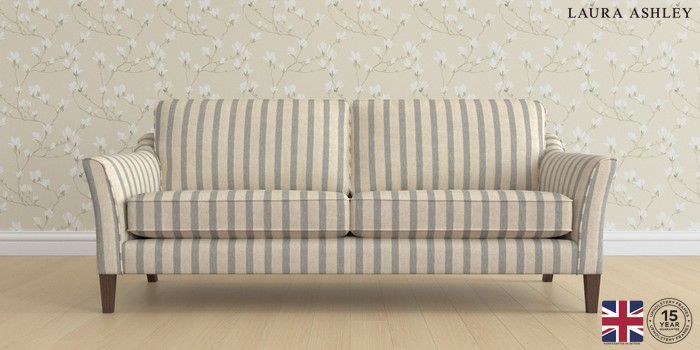 6.12.1 Buy Marford by Laura Ashley 4 Seater Sofa Kinsham Stripe Seaspray Blue Straight Mid - Chestnut from the Next UK online shop Click here to use our accessible website