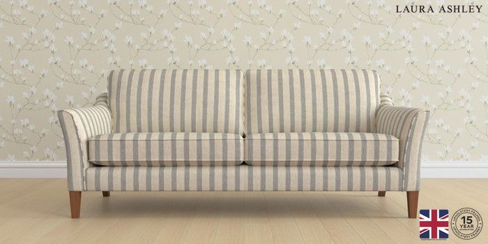 6.12.1 Buy Marford by Laura Ashley 4 Seater Sofa Kinsham Stripe Seaspray Blue Straight Mid - Teak from the Next UK online shop Click here to use our accessible website
