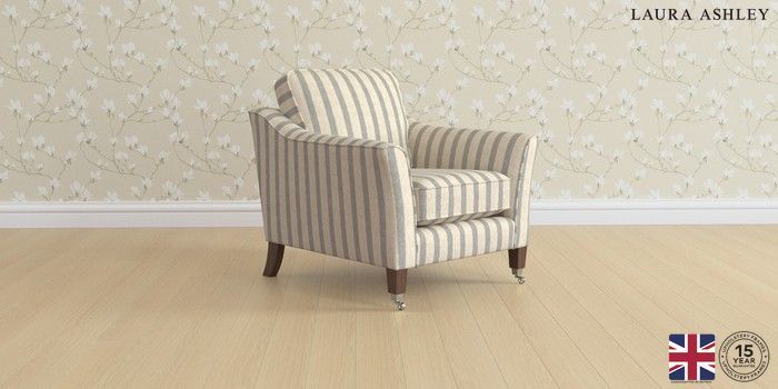 6.12.1 Buy Marford by Laura Ashley Armchair Kinsham Stripe Seaspray Blue Straight Chrome Castor - Chestnut from the Next UK online shop Click here to use our accessible website