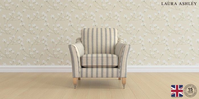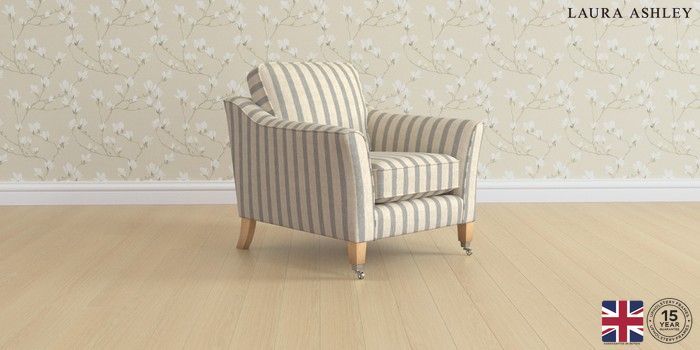6.12.1 Buy Marford by Laura Ashley Armchair Kinsham Stripe Seaspray Blue Straight Chrome Castor - Light Oak from the Next UK online shop Click here to use our accessible website