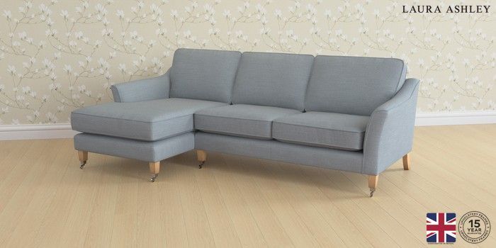 6.12.1 Buy Marford by Laura Ashley Medium Sofa Chaise - Left Hand Kinsham Seaspray Blue Straight Chrome Castor - Light Oak from the Next UK online shop Click here to use our accessible website