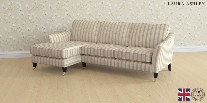 6.12.1 Buy Marford by Laura Ashley Medium Sofa Chaise - Left Hand Kinsham Stripe Natural Straight Brass Castor - Black from the Next UK online shop Click here to use our accessible website