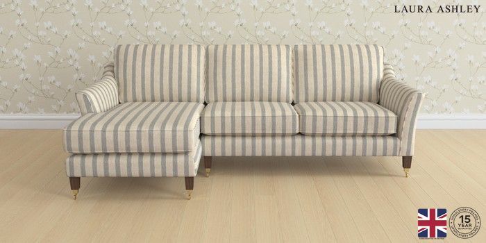 6.12.1 Buy Marford by Laura Ashley Medium Sofa Chaise - Left Hand Kinsham Stripe Seaspray Blue Straight Brass Castor - Chestnut from the Next UK online shop Click here to use our accessible website