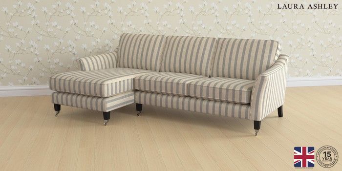 6.12.1 Buy Marford by Laura Ashley Medium Sofa Chaise - Left Hand Kinsham Stripe Seaspray Blue Straight Chrome Castor - Black from the Next UK online shop Click here to use our accessible website