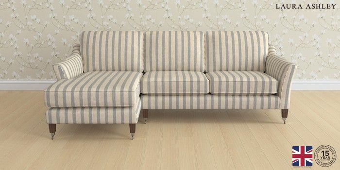 6.12.1 Buy Marford by Laura Ashley Medium Sofa Chaise - Left Hand Kinsham Stripe Seaspray Blue Straight Chrome Castor - Chestnut from the Next UK online shop Click here to use our accessible website