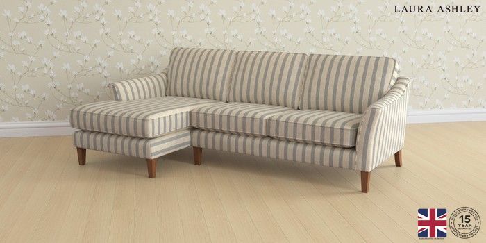 6.12.1 Buy Marford by Laura Ashley Medium Sofa Chaise - Left Hand Kinsham Stripe Seaspray Blue Straight Mid - Teak from the Next UK online shop Click here to use our accessible website