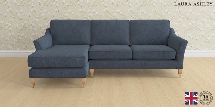 6.12.1 Buy Marford by Laura Ashley Medium Sofa Chaise - Left Hand Lundar Chenille Navy Blue Straight Brass Castor - Light Oak from the Next UK online shop Click here to use our accessible website