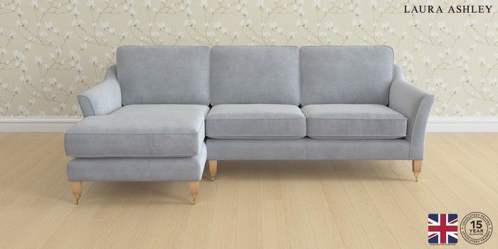 6.12.1 Buy Marford by Laura Ashley Medium Sofa Chaise - Left Hand Peyton Powder Blue Straight Brass Castor - Light Oak from the Next UK online shop Click here to use our accessible website