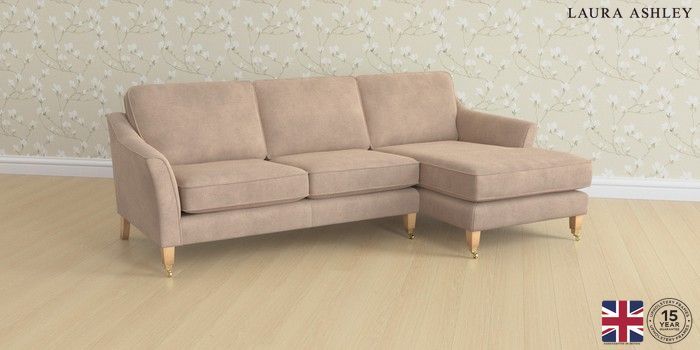6.12.1 Buy Marford by Laura Ashley Medium Sofa Chaise - Right Hand Ailsworth Mink Natural Straight Brass Castor - Light Oak from the Next UK online shop Click here to use our accessible website