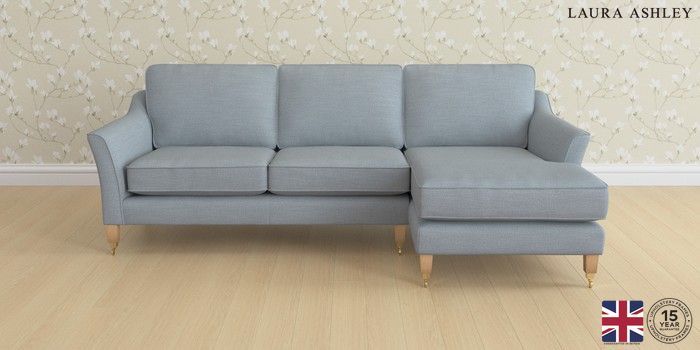 6.12.1 Buy Marford by Laura Ashley Medium Sofa Chaise - Right Hand Kinsham Seaspray Blue Straight Brass Castor - Light Oak from the Next UK online shop Click here to use our accessible website