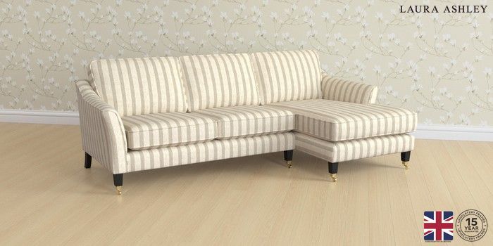 6.12.1 Buy Marford by Laura Ashley Medium Sofa Chaise - Right Hand Kinsham Stripe Natural Straight Brass Castor - Black from the Next UK online shop Click here to use our accessible website