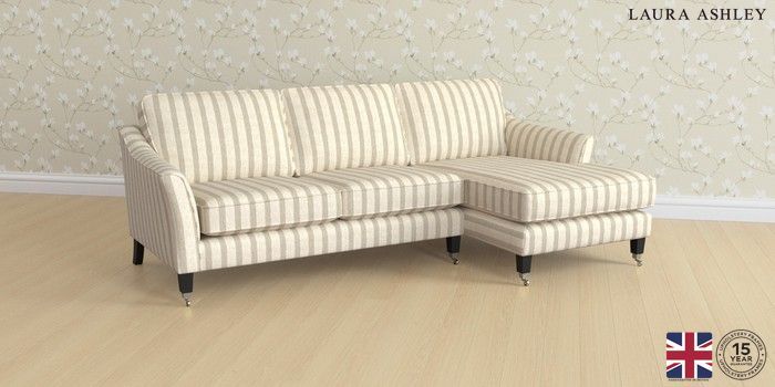 6.12.1 Buy Marford by Laura Ashley Medium Sofa Chaise - Right Hand Kinsham Stripe Natural Straight Chrome Castor - Black from the Next UK online shop Click here to use our accessible website