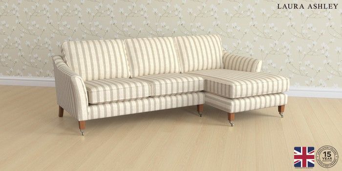 6.12.1 Buy Marford by Laura Ashley Medium Sofa Chaise - Right Hand Kinsham Stripe Natural Straight Chrome Castor - Teak from the Next UK online shop Click here to use our accessible website