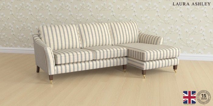 6.12.1 Buy Marford by Laura Ashley Medium Sofa Chaise - Right Hand Kinsham Stripe Seaspray Blue Straight Brass Castor - Chestnut from the Next UK online shop Click here to use our accessible website