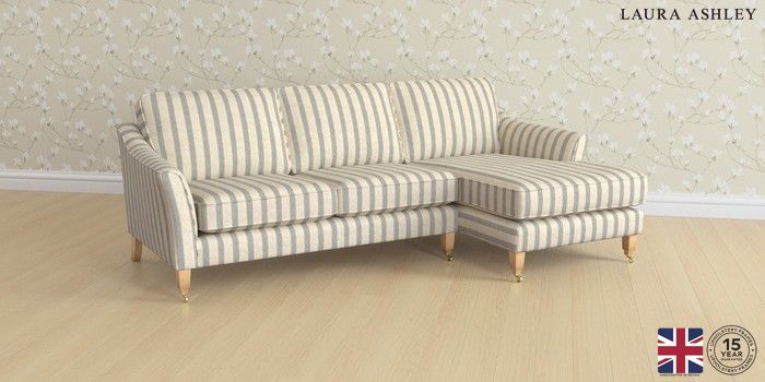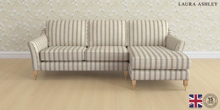 6.12.1 Buy Marford by Laura Ashley Medium Sofa Chaise - Right Hand Kinsham Stripe Seaspray Blue Straight Brass Castor - Light Oak from the Next UK online shop Click here to use our accessible website