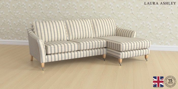 6.12.1 Buy Marford by Laura Ashley Medium Sofa Chaise - Right Hand Kinsham Stripe Seaspray Blue Straight Chrome Castor - Light Oak from the Next UK online shop Click here to use our accessible website