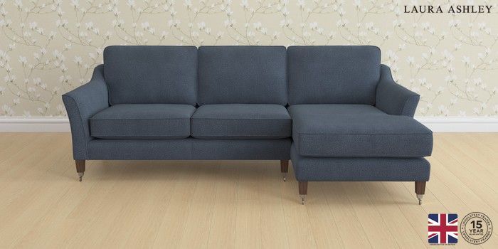 6.12.1 Buy Marford by Laura Ashley Medium Sofa Chaise - Right Hand Lundar Chenille Navy Blue Straight Chrome Castor - Chestnut from the Next UK online shop Click here to use our accessible website