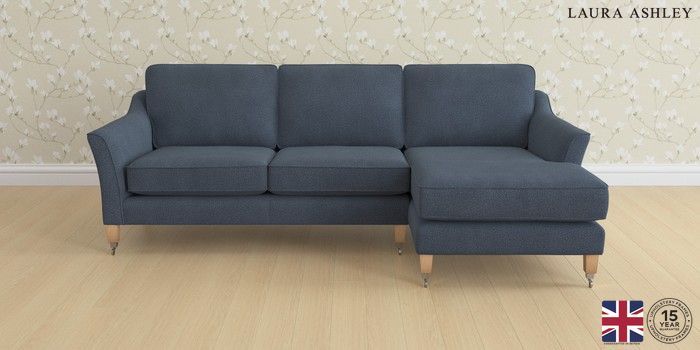 6.12.1 Buy Marford by Laura Ashley Medium Sofa Chaise - Right Hand Lundar Chenille Navy Blue Straight Chrome Castor - Light Oak from the Next UK online shop Click here to use our accessible website