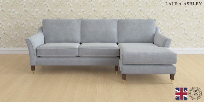 6.12.1 Buy Marford by Laura Ashley Medium Sofa Chaise - Right Hand Peyton Powder Blue Straight Brass Castor - Chestnut from the Next UK online shop Click here to use our accessible website