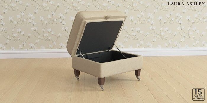 6.12.1 Buy Marford by Laura Ashley Storage Footstool Edwin Herringbone Natural Straight Chrome Castor - Chestnut from the Next UK online shop Click here to use our accessible website