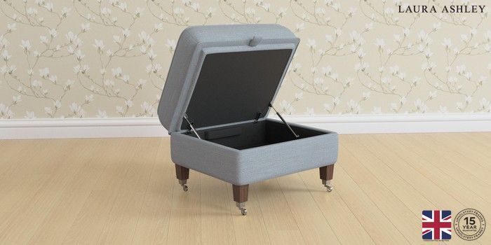 6.12.1 Buy Marford by Laura Ashley Storage Footstool Kinsham Seaspray Blue Straight Chrome Castor - Chestnut from the Next UK online shop Click here to use our accessible website
