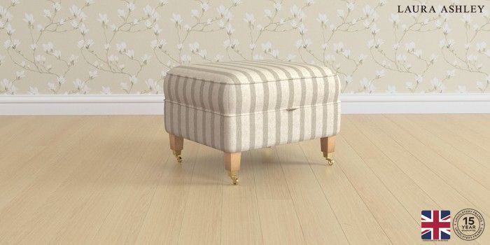 6.12.1 Buy Marford by Laura Ashley Storage Footstool Kinsham Stripe Natural Straight Brass Castor - Light Oak from the Next UK online shop Click here to use our accessible website