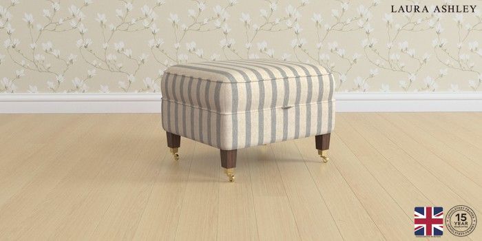 6.12.1 Buy Marford by Laura Ashley Storage Footstool Kinsham Stripe Seaspray Blue Straight Brass Castor - Chestnut from the Next UK online shop Click here to use our accessible website
