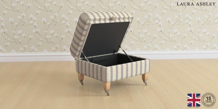 6.12.1 Buy Marford by Laura Ashley Storage Footstool Kinsham Stripe Seaspray Blue Straight Chrome Castor - Light Oak from the Next UK online shop Click here to use our accessible website