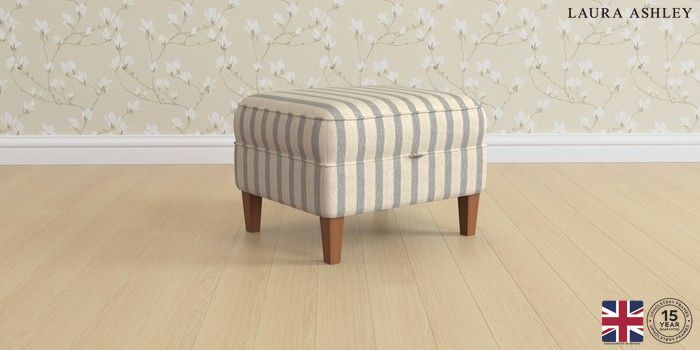 6.12.1 Buy Marford by Laura Ashley Storage Footstool Kinsham Stripe Seaspray Blue Straight Mid - Teak from the Next UK online shop Click here to use our accessible website