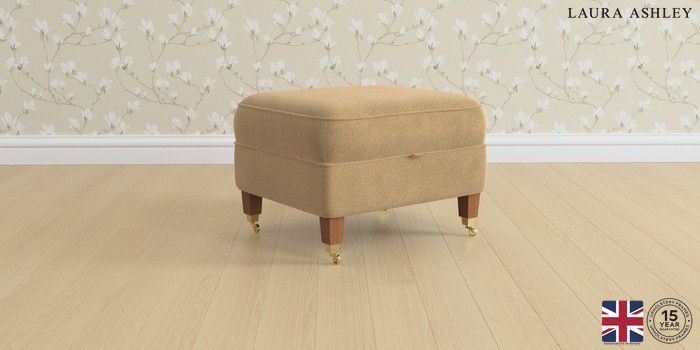 6.12.1 Buy Marford by Laura Ashley Storage Footstool Lundar Chenille Caramel Natural Straight Brass Castor - Teak from the Next UK online shop Click here to use our accessible website