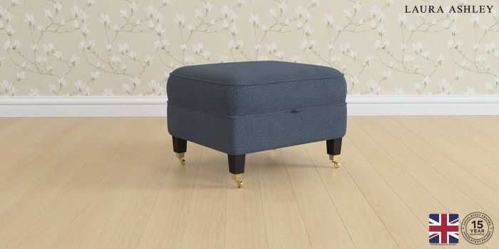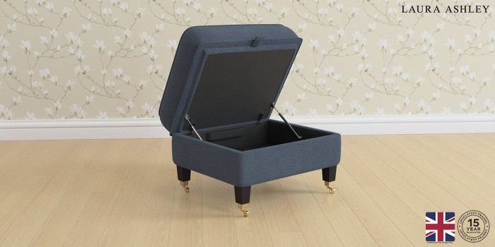 6.12.1 Buy Marford by Laura Ashley Storage Footstool Lundar Chenille Navy Blue Straight Brass Castor - Black from the Next UK online shop Click here to use our accessible website