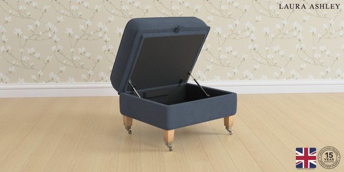6.12.1 Buy Marford by Laura Ashley Storage Footstool Lundar Chenille Navy Blue Straight Chrome Castor - Light Oak from the Next UK online shop Click here to use our accessible website