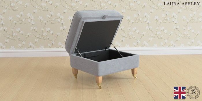 6.12.1 Buy Marford by Laura Ashley Storage Footstool Peyton Powder Blue Straight Brass Castor - Light Oak from the Next UK online shop Click here to use our accessible website