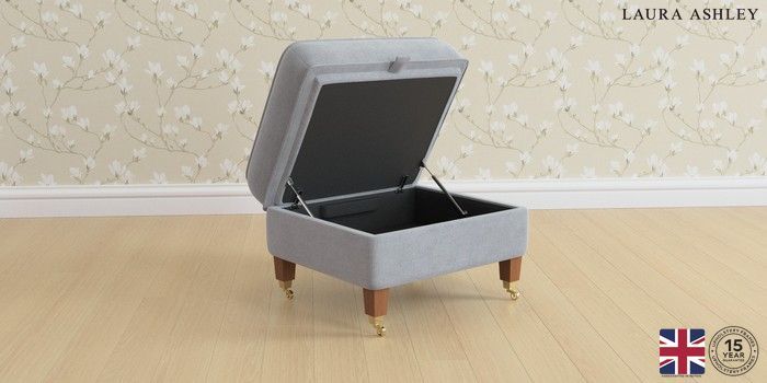 6.12.1 Buy Marford by Laura Ashley Storage Footstool Peyton Powder Blue Straight Brass Castor - Teak from the Next UK online shop Click here to use our accessible website
