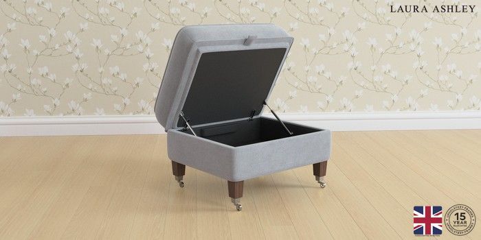 6.12.1 Buy Marford by Laura Ashley Storage Footstool Peyton Powder Blue Straight Chrome Castor - Chestnut from the Next UK online shop Click here to use our accessible website