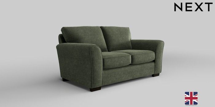 6.12.1 Buy Michigan II 2 Seater Small Sofa Luxe Chenille Mid Green Slim Block - Dark from the Next UK online shop Click here to use our accessible website