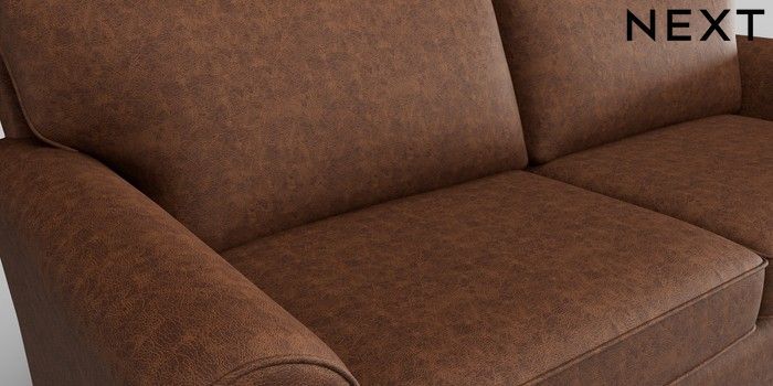 7.2.5 Buy Michigan II 3 Seater Small Sofa Monza Faux Leather Easy Clean Chestnut Brown Slim Block - Dark from the Next UK online shop Click here to use our accessible website
