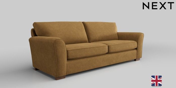 6.12.1 Buy Michigan II 3 Seater Sofa Luxe Chenille Honey Yellow Slim Block - Mid from the Next UK online shop Click here to use our accessible website