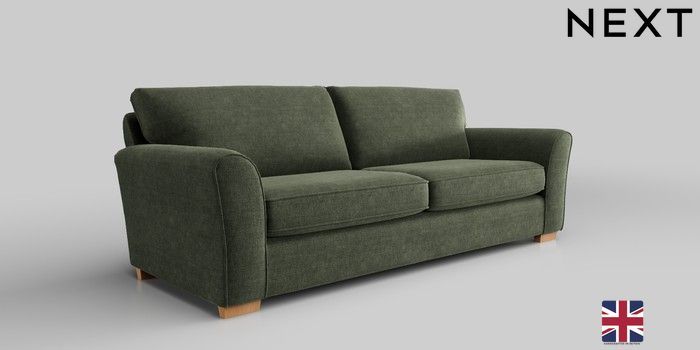 6.12.1 Buy Michigan II 3 Seater Sofa Luxe Chenille Mid Green Slim Block - Light from the Next UK online shop Click here to use our accessible website