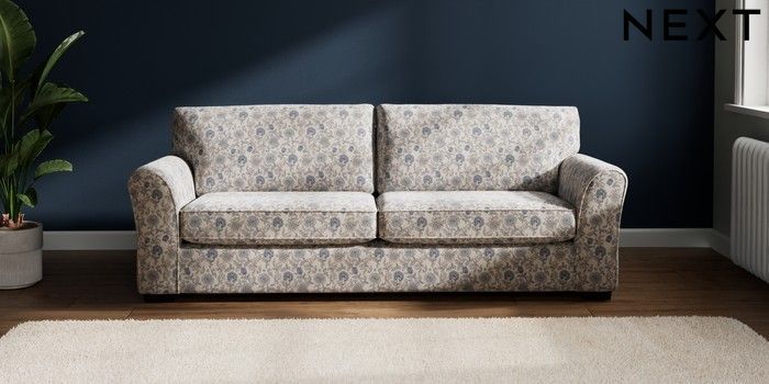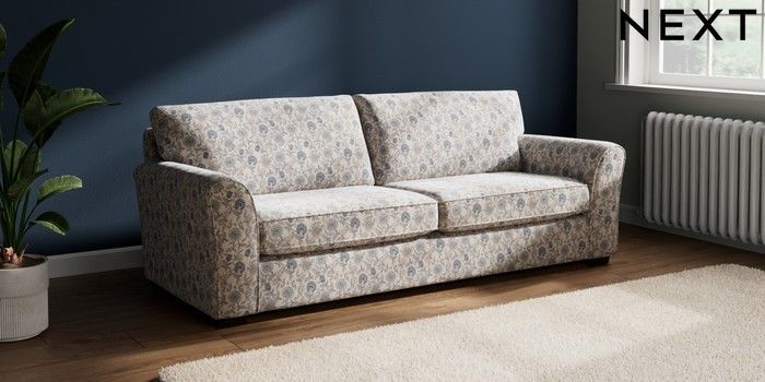 7.3.1 Buy Michigan II 3 Seater Sofa Relaxed Linen Look Print Woodblock Floral Blue Slim Block - Dark from the Next UK online shop